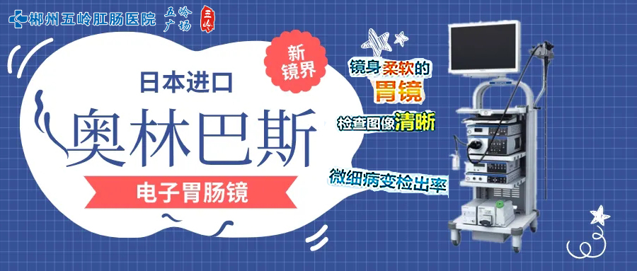 郴州肛肠医院斥巨资引进日本奥林巴斯纯进口胃、肠内窥镜系统,该系统集检查、诊断、治疗、手术为一体。可诊断及早期发现的疾病,如:内痔、外痔、混合痔、脱肛、肛裂、肛周脓肿、肛乳头瘤、低位直肠癌、低位直肠息肉、骶尾部脓肿、骶尾部瘘、直肠前突等肛肠常见病及多发病。